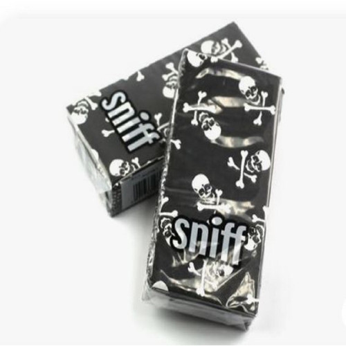 The most unique pack of tissues you will ever carry in your pocket! For the Pirate in you each tissue is black with skulls and crossbones printed on it. Very limited quantity.