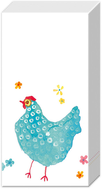 10 tissues per package featuring this cute Chicken designs on each. 2" W x 4" H folded, strong yet extra soft 4-ply tissues that can be used multiple times. Perfect size to carry in your pocket.