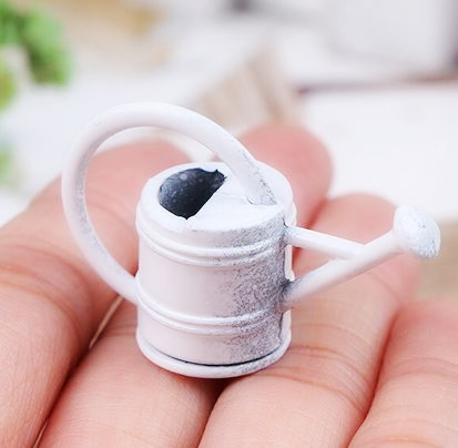 The perfect addition to your miniature Farmhouse Garden or Mini Fairy Garden this tiny Dollhouse Scale Metal Watering Can in white fits any style Gardener. Made from solid Metal this little watering can is true 1:12 scale, 1" and can be painted or decorated according to your style.